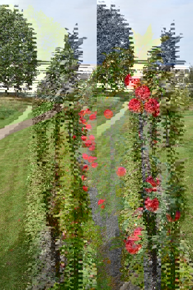The apple trees represent species from, e.g. Denmark, Sweden, Germany, the Netherlands, France, the UK, and the USA. Some trees originate from organically grown wild stock, while others belong to widely cultivated commercial varieties such as Filippa, Belle de Boskoop, and Spartan.